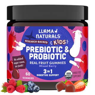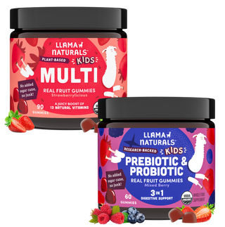 ** Source: Amazon.com “Organic Kids Vitamins” category, last 90 day sales, May 2025. Independent of Amazon’s endorsement. † Ingredient‑level literature count based on PubMed search (May 2025) of human and animal studies on Vitamins A, B‑complex, C, D3, E, K1, zinc, elderberry extract, xylo‑oligosaccharides, Bacillus subtilis, and Bacillus coagulans. Studies were conducted on individual ingredients, not on Llama Naturals finished products.
