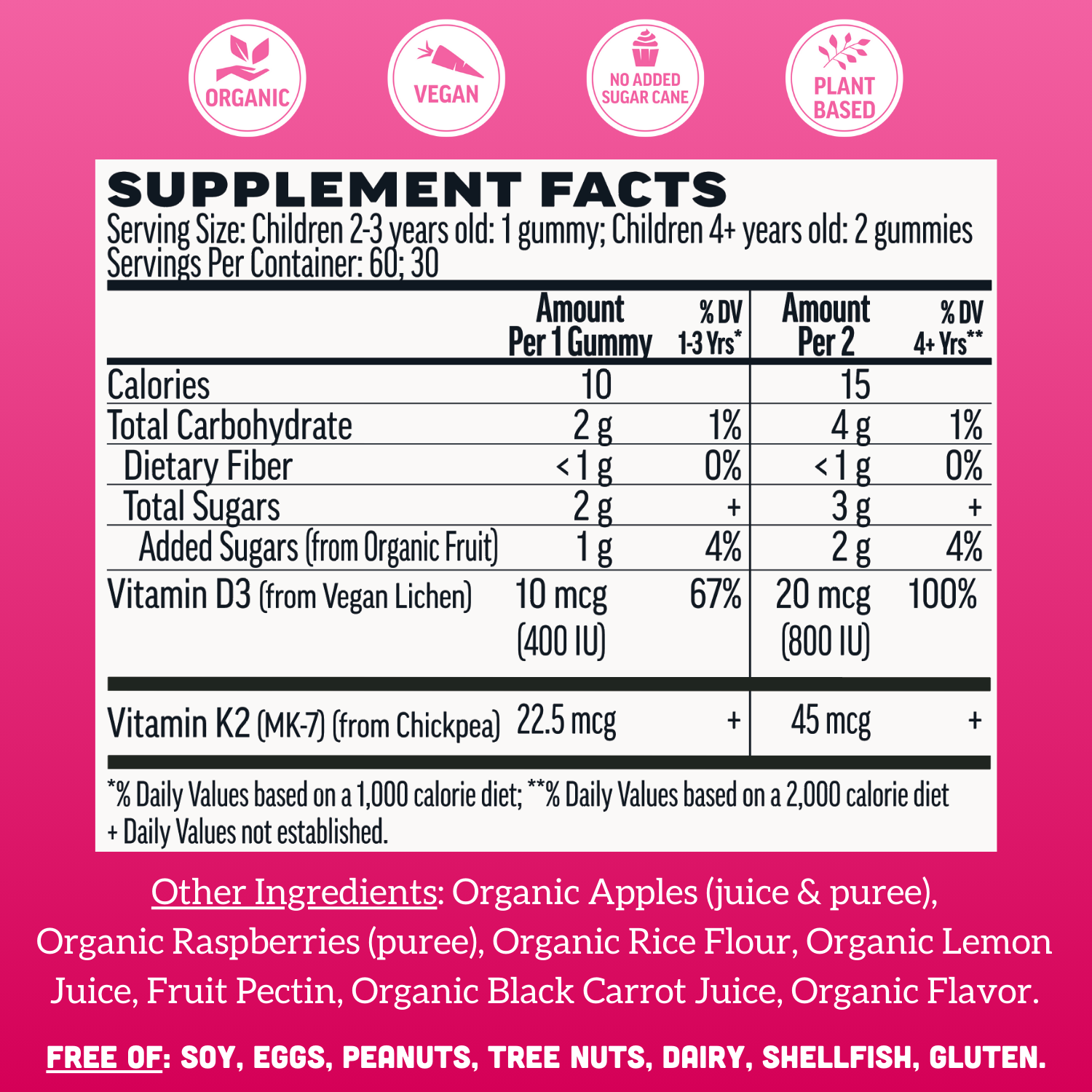 *Table shows comparison for the Llama Naturals Vitamin D Gummies
