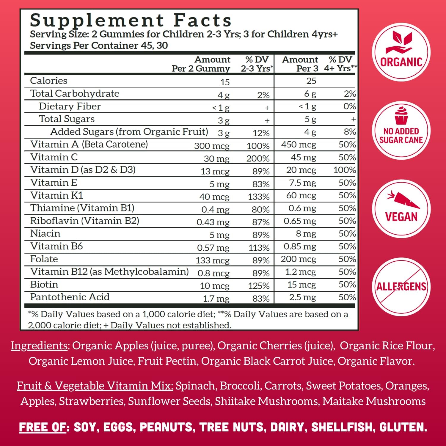 - LBLisa B.Verified BuyerHow do your kids like the taste? They love itHave you noticed improvements in your child's energy levels, appetite, mood or sleep? Too soon to sayHow old is you child? 6-10How long has your child been taking them? Less than 3 monthsJanuary 2, 2026How do your kids like the taste? They love itHave you noticed improvements in your child's energy levels, appetite, mood or sleep? Too soon to sayHow old is you child? 6-10How long has your child been taking them? Less than 3 monthsReviewingKids Whole Food Multivitamin Gummies, Cherry (90 ct)Rated 5 out of 5 starsNew customer